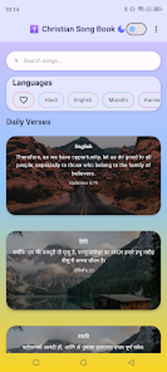 หนังสือเนื้อเพลงเพลงคริสเตียนเป็นแอปพลิเคชันการศึกษาที่ออกแบบมาเพื่อการสักการะ โดยมีการรวบรวมเพลงสวดคริสเตียนจำนวนมากในหลายภาษา รวมถึงภาษาอังกฤษ ฮินดี มาราธี คันนาดา และทมิฬ แอปนี้ตอบสนองความต้องการของผู้ใช้ที่หลากหลาย โดยมีรายการเพลงสำหรับเด็กที่เหมาะสำหรับโรงเรียนวันอาทิตย์ ทำให้เป็นแหล่งข้อมูลที่ยอดเยี่ยมสำหรับครอบครัวและผู้สอน